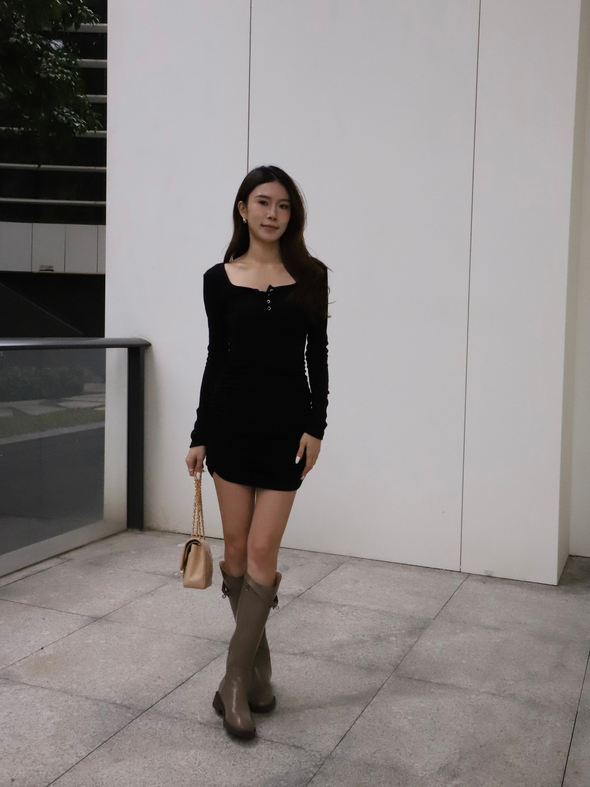 Button Long Sleeves Mini Dress