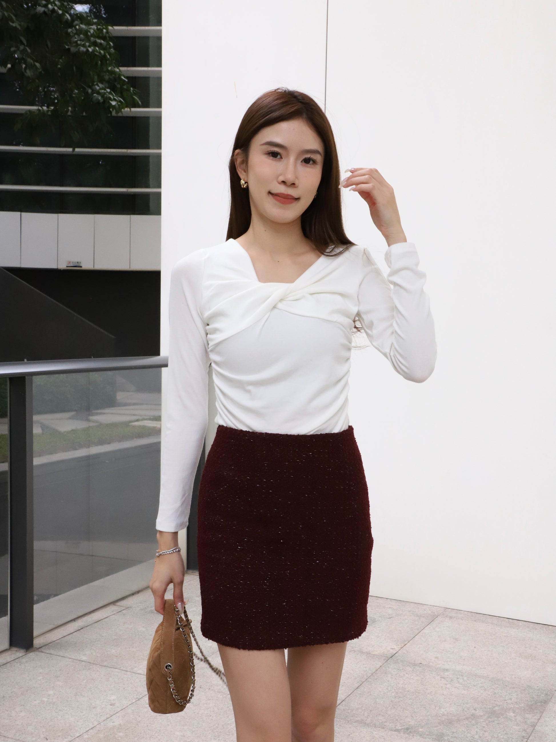 Cross Twisted Cotton Long Sleeves Top