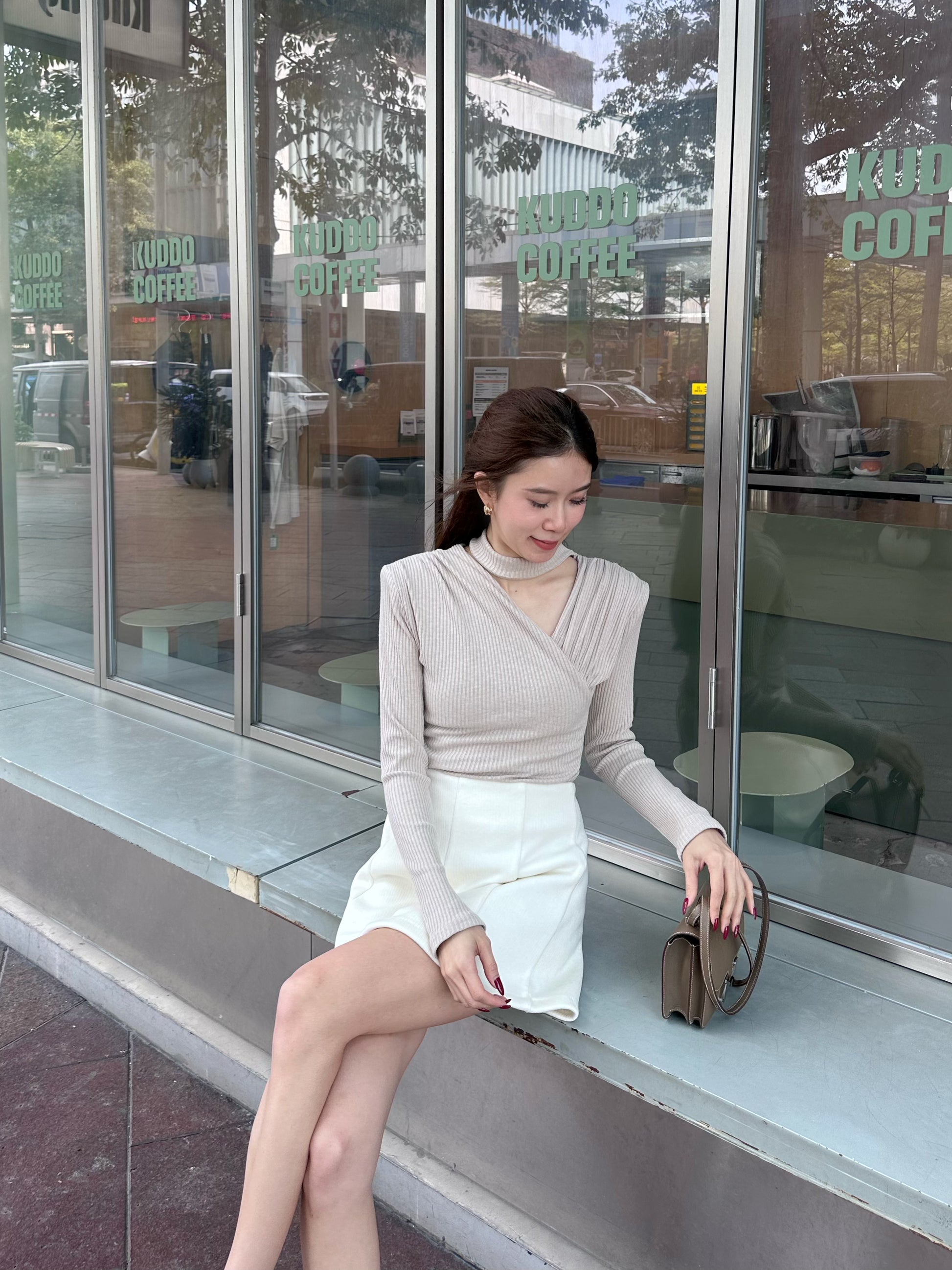 Cross V Cotton Long Sleeves Top