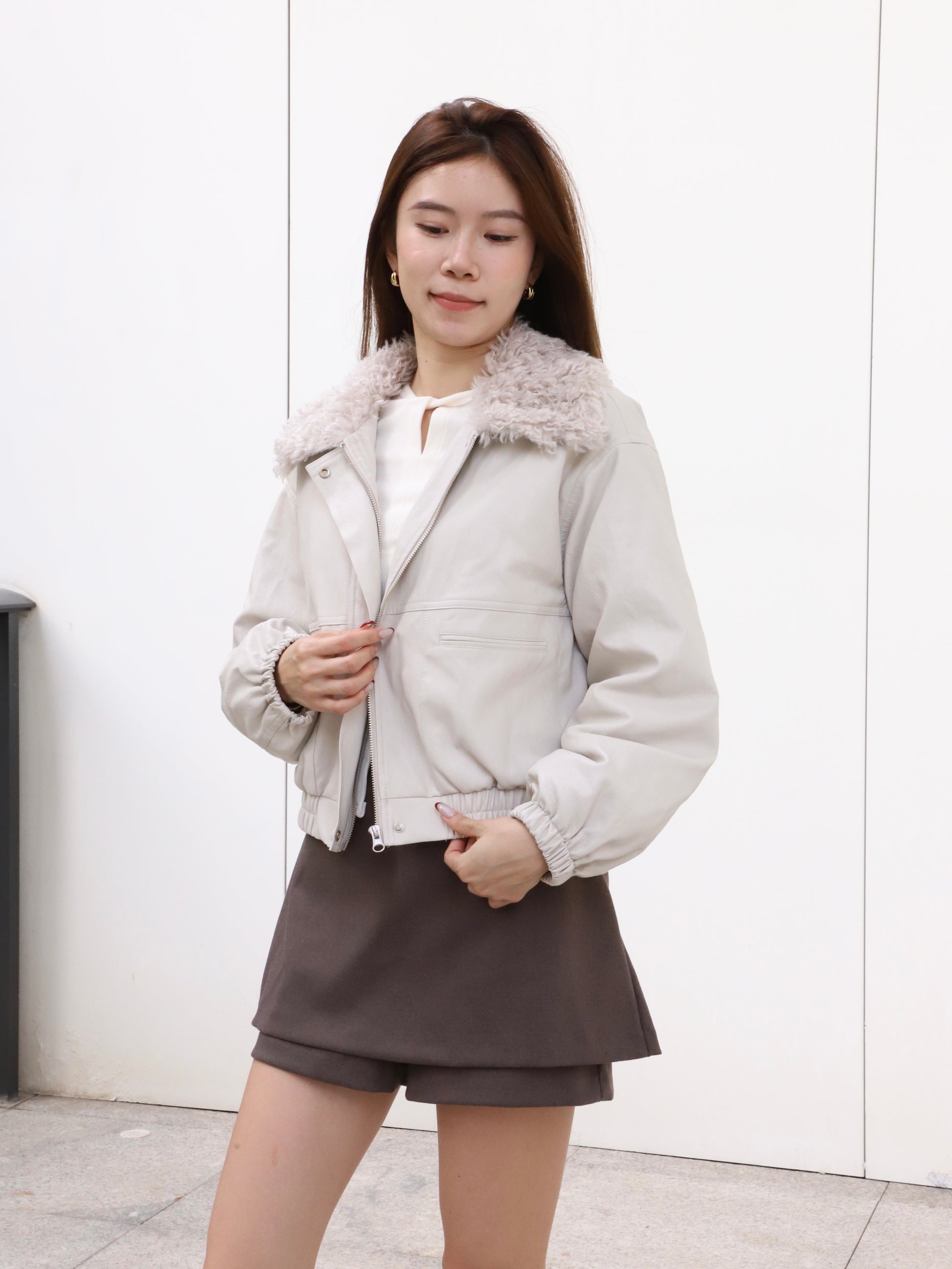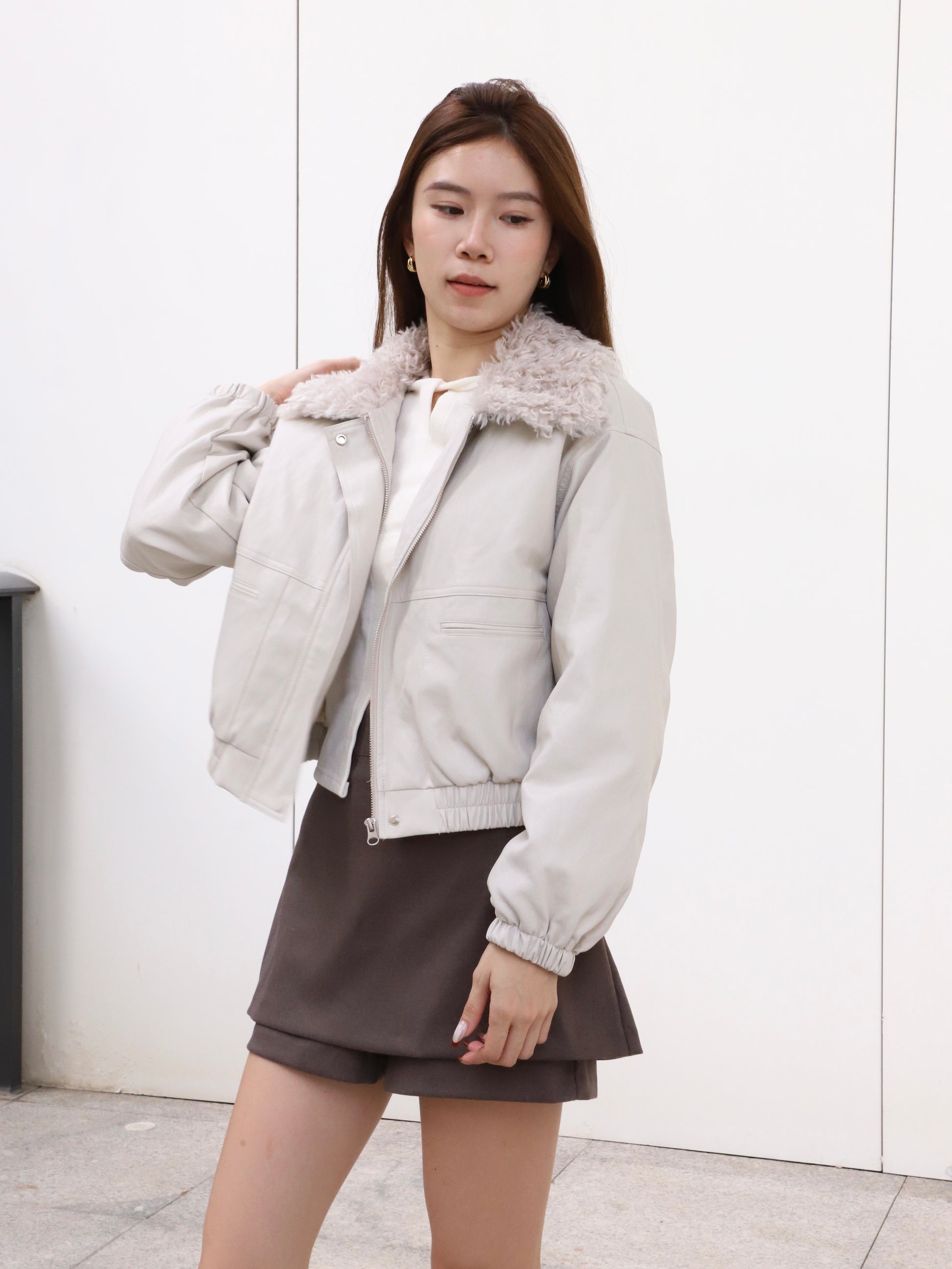 Fluffy Collar PU Jacket