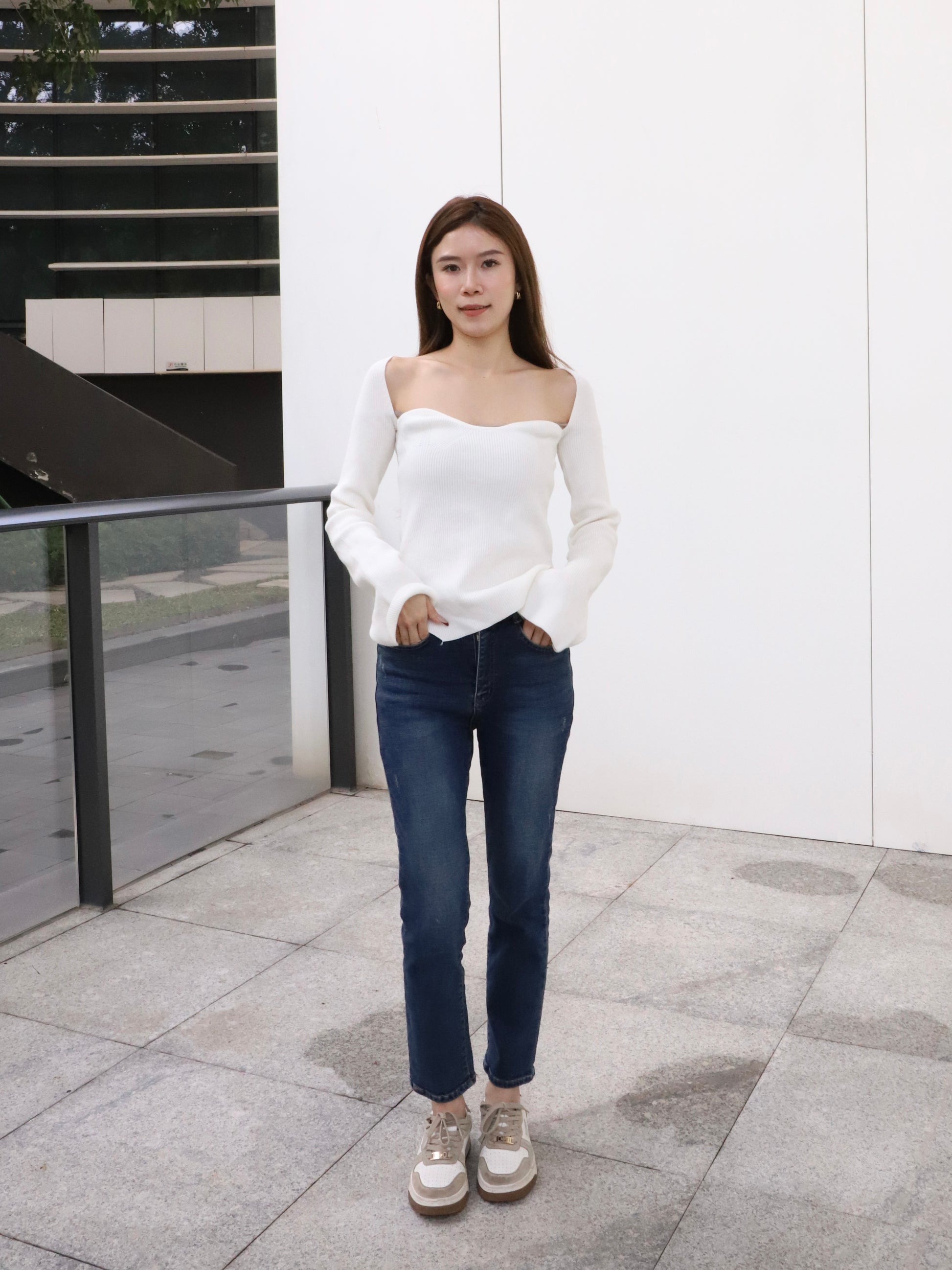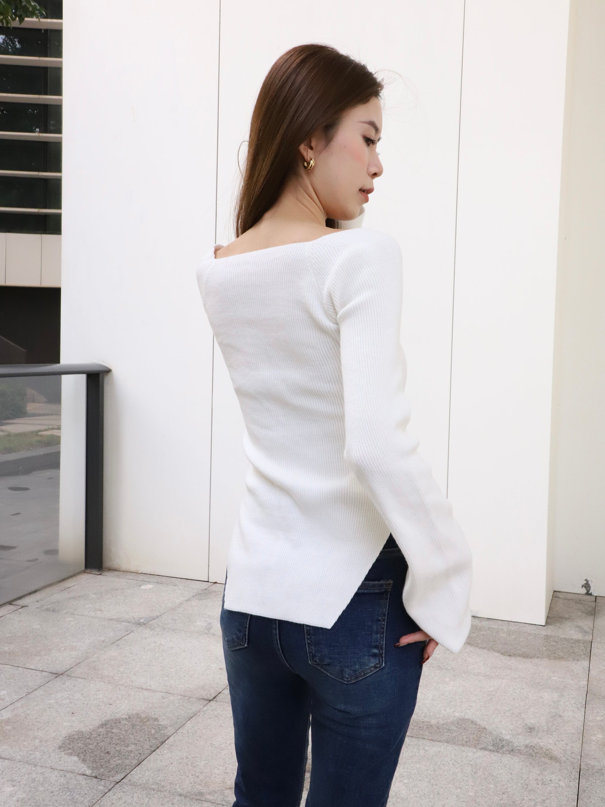 Knitted Heartshape Flare Sleeves Top