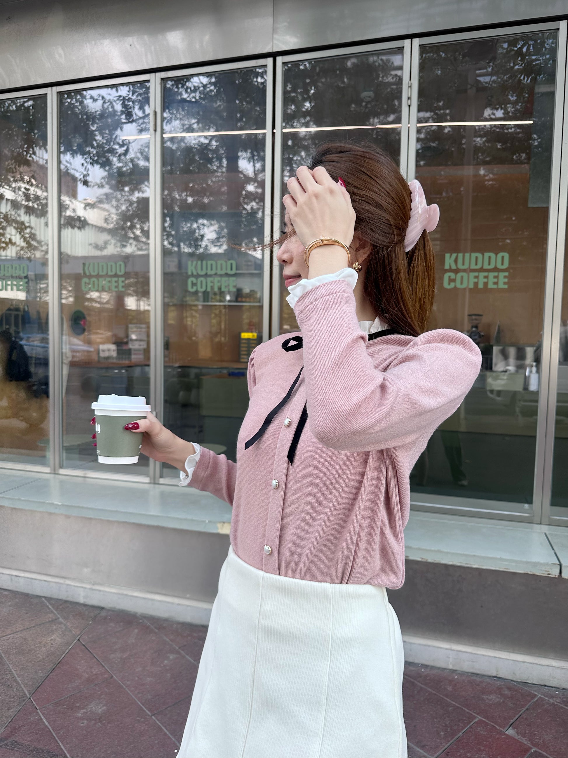 Ribbon Tied Lace Long Sleeves Top